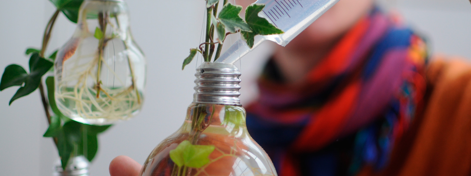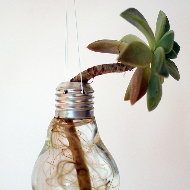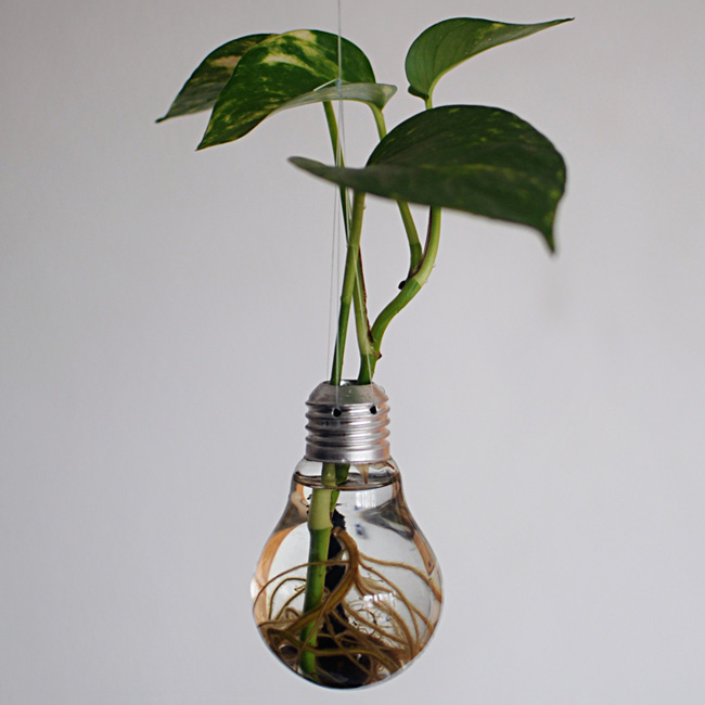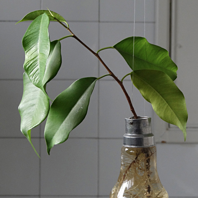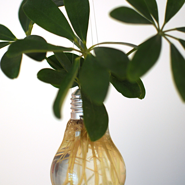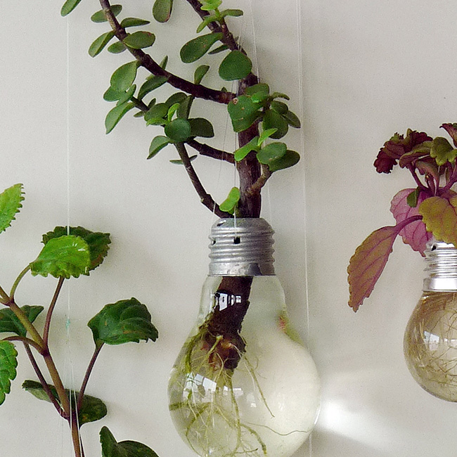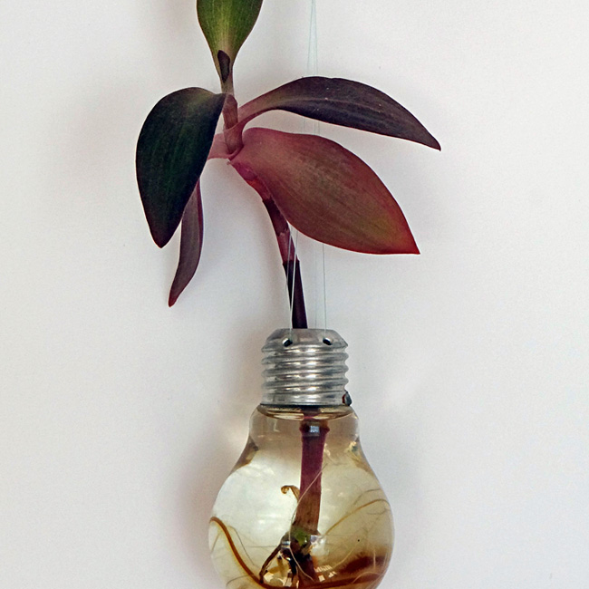 Colocar en un lugar muy luminoso. Para la mayoría de las plantas, no hace falta cambiar el agua. Vigilar y rellenar periodicamente la bombilla para que las raíces esten siempre cubiertas de agua.